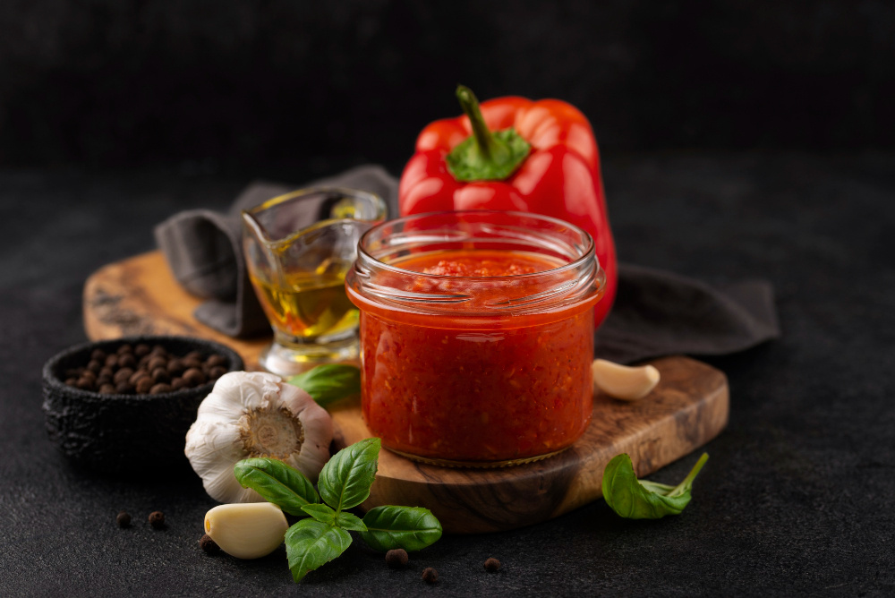 - Сладкий перец: это центральный компонент, который задает тон всему блюду. Мясистые сорта красного и желтого перца идеально подойдут.