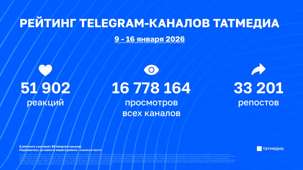 Свежий обзор статистики telegram-каналов Татмедиа | 9 - 16 января