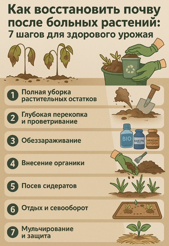 Обеззараживание почвы является ключевым этапом восстановления. Вы можете воспользоваться различными методами: