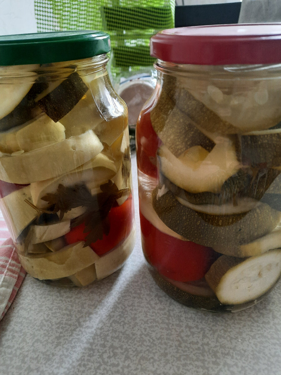 Для приготовления двух литровых банок маринованных овощей понадобятся: