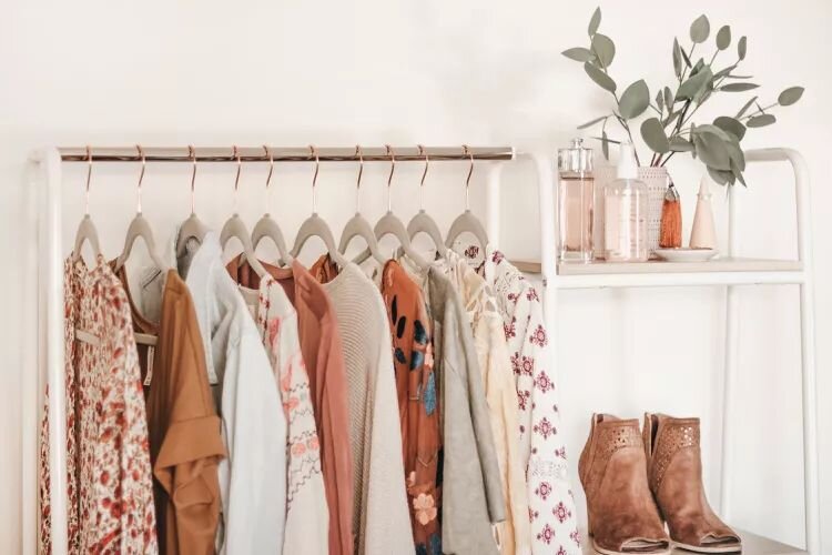 5. Эстетика открытого хранения. Если у вас есть любимые дизайнерские вещи, используйте их как элементы декора. Открытые стеллажи с одеждой будут не только практичными, но и эстетически привлекательными.