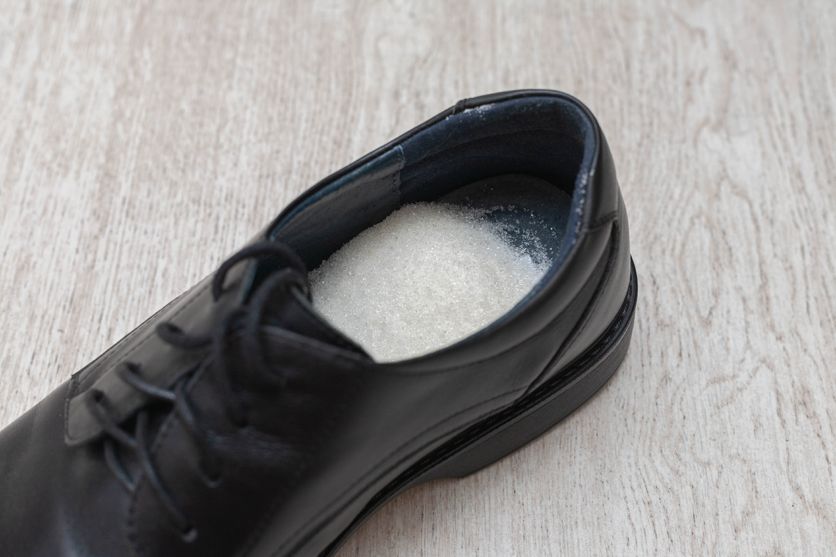 Если обувь была подвержена длительным прогулкам или попала под дождь, сахар поможет избавиться от стойких запахов и сделает её свежей и сухой к утру.