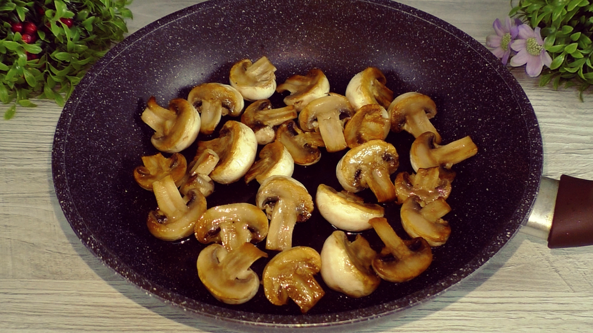 2. Разогрейте небольшое количество растительного масла на сковороде. Обжаривайте грибы на умеренном огне, сначала с одной стороны, а затем переверните и готовьте, пока они не подрумянятся.