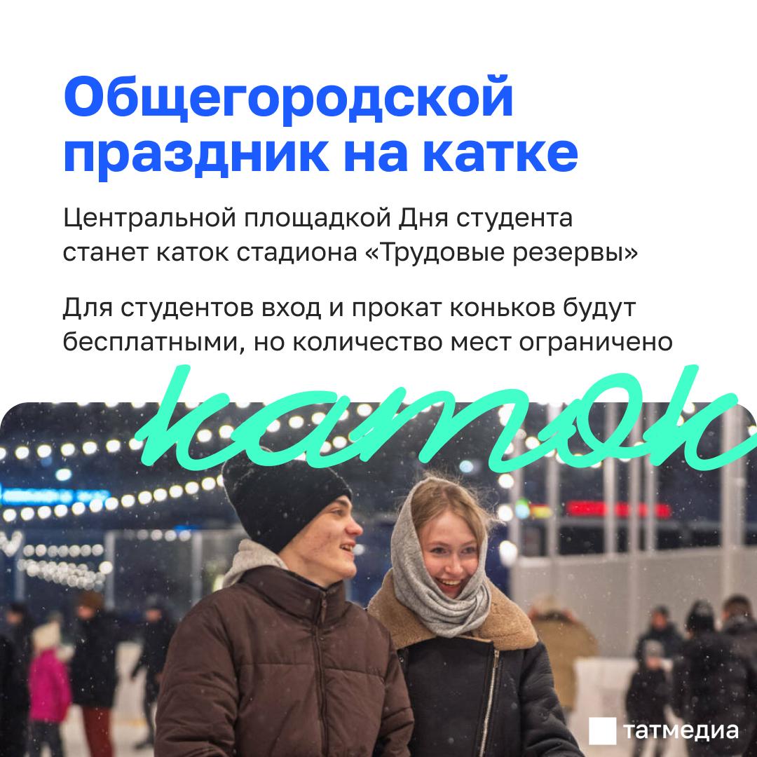 25 января город объединит студентов и молодежь на катке, концертах и городских площадках. Подробнее – в карточках.