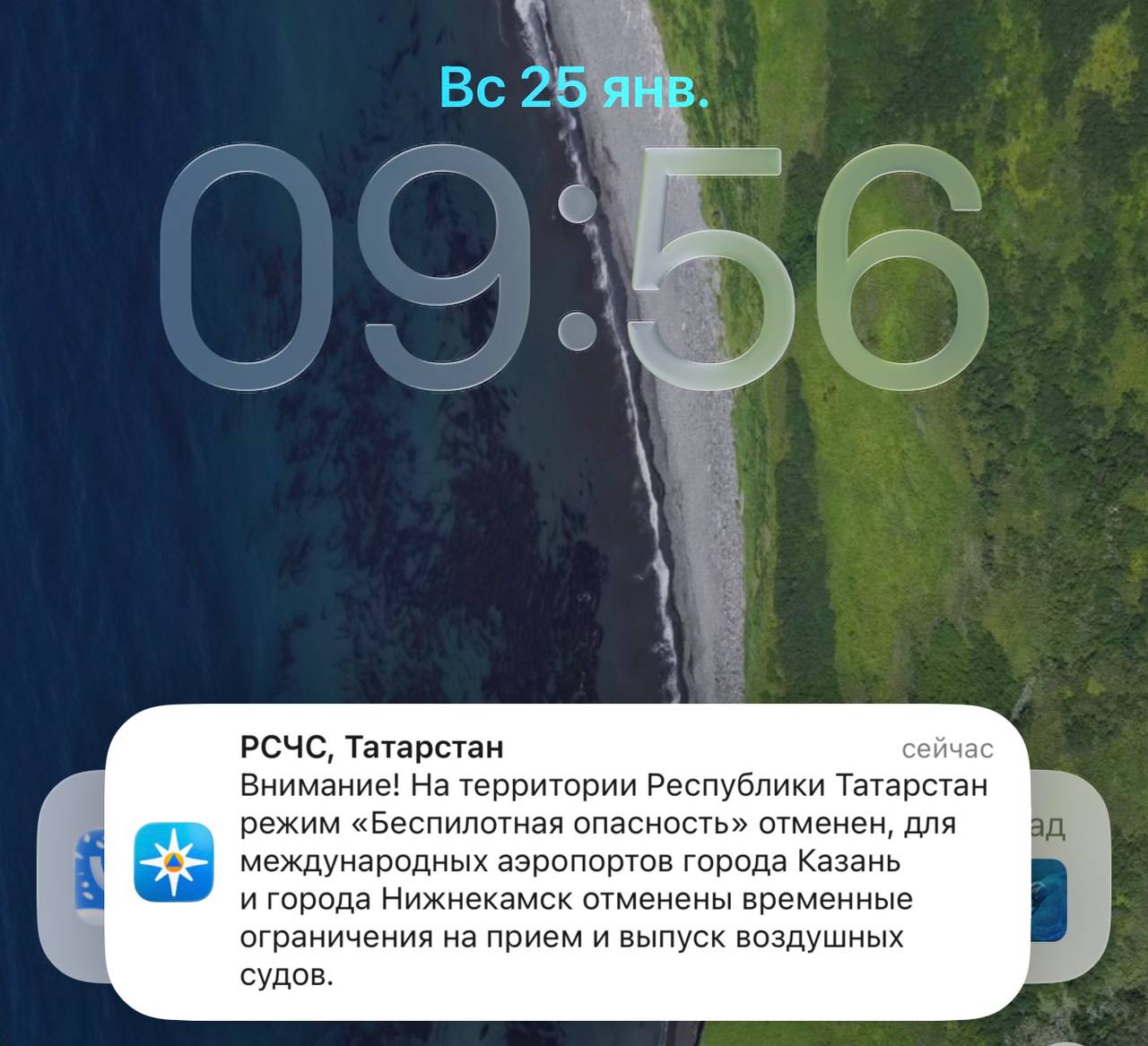 Спустя час ограничения в аэропортах Татарстана сняты. Также отменен режим беспилотной опасности, сообщает МЧС России.