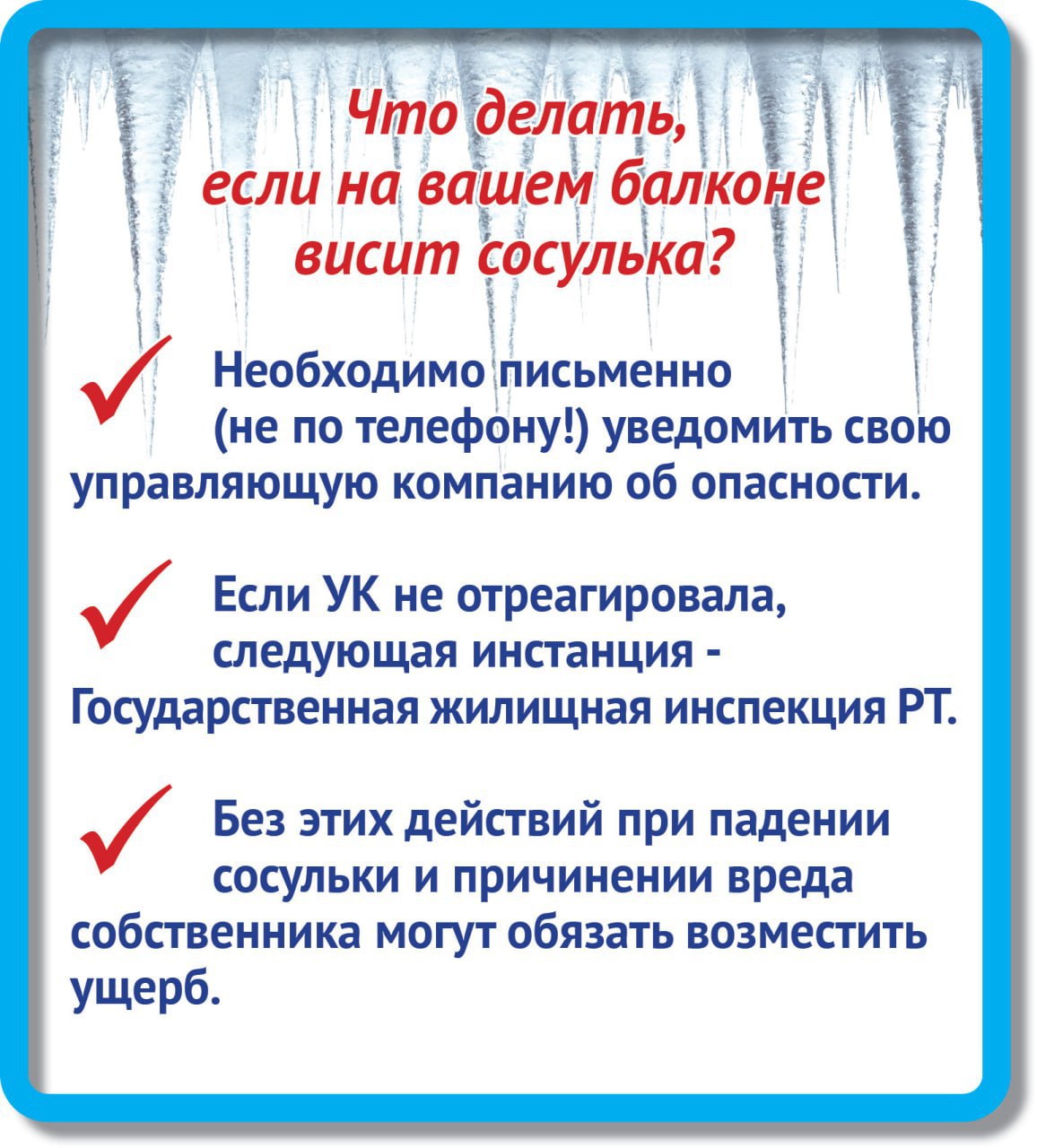 Температурные качели в этом году благоприятствуют бурному росту сосулек, которые, достигая внушительных размеров, начинают угрожать здоровью и жизни татарстанцев. И накопившийся на дорогах снег тоже сильно мешает передвижению. И с этим надо что-то делать, причем в кратчайшие сроки, пока не случилось несчастье. Кто же должен заниматься решением этих проблем?