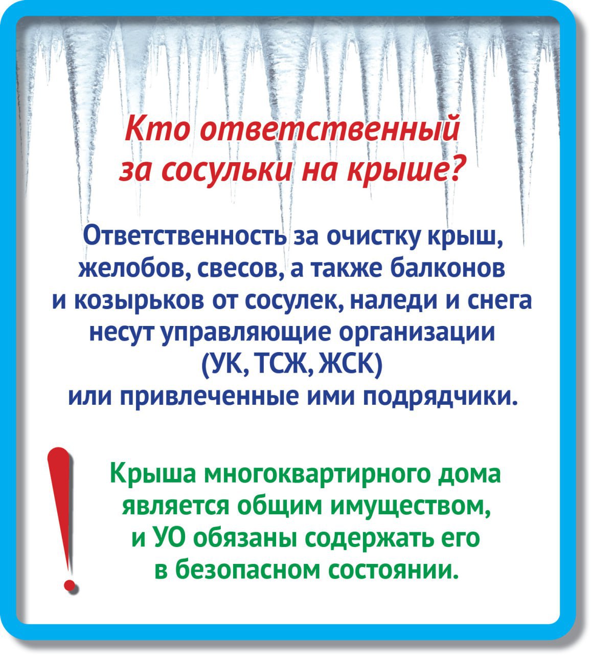 Кто обязан убирать сосульки?