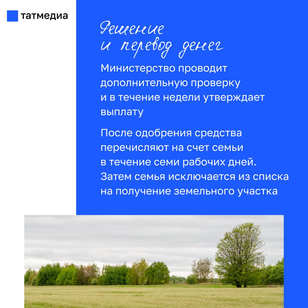 С октября 2025 года по решению Раиса Татарстана Рустама Минниханова многодетным семьям предложили альтернативу земле - денежную выплату 200 000 рублей.