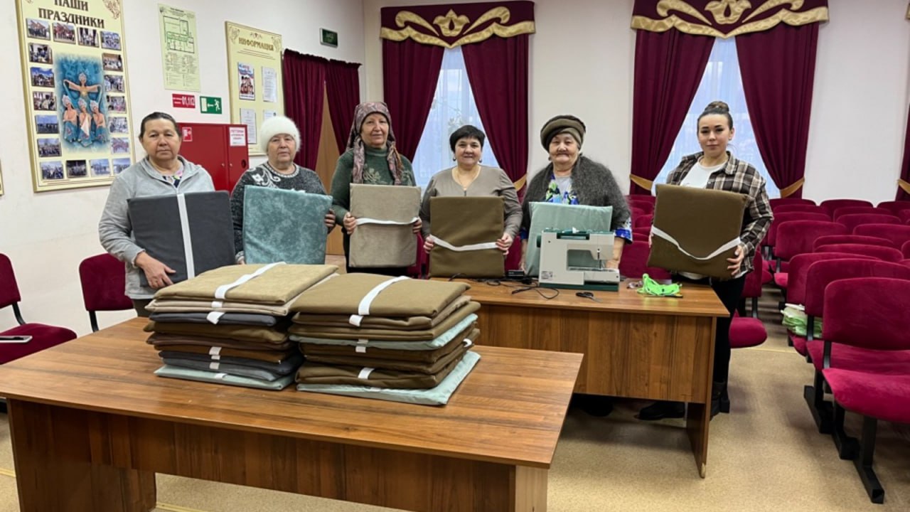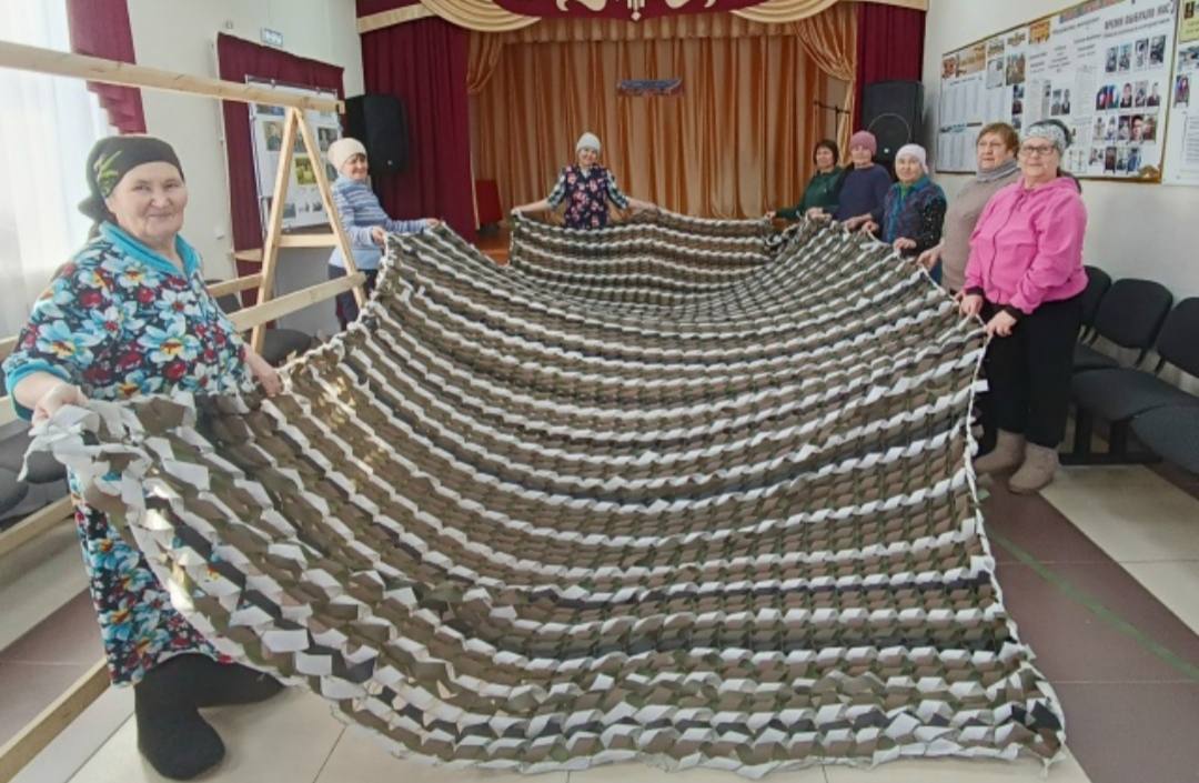 Волонтеры из села Чувашское-Бурнаево Алькеевского района изготовливают маскировочные сети для военнослужащих.