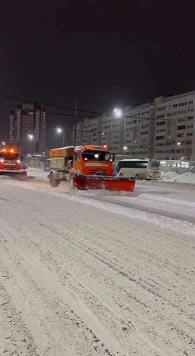 Делимся кадрами ночной уборки. На службе за прошедшие сутки были 772 единицы техники и 668 дорожных рабочих. Они убирали выпавший и падающий снег, проводили противогололедную обработку. За сутки с улиц города вывезли 10,6 тыс. тонн снега и использовали 1,5тыс. тонн противогололедных материалов. Сегодня эстафету приняли 439 единиц техники и 572 рабочих. Пожелаем им удачи