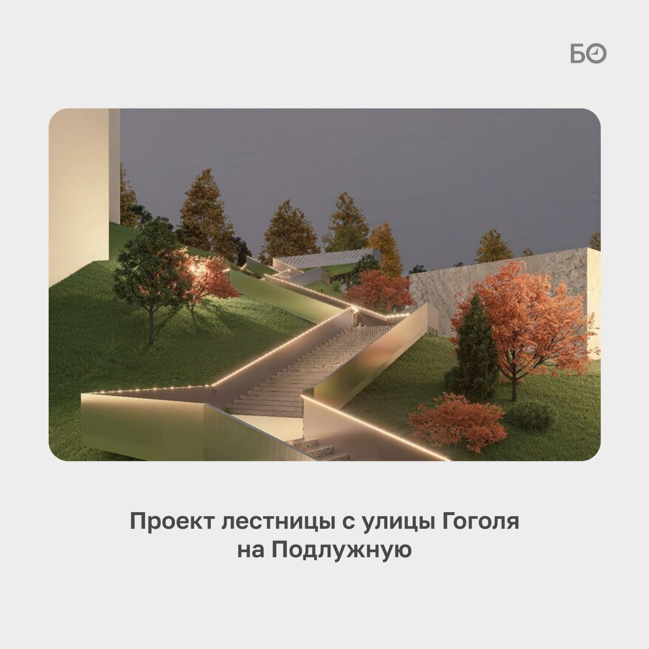 Кроме этого, главный архитектор Казани Ильсияр Тухватуллина показала еще один эксиз – лестницы между улицами Гоголя и Подлужной. Лестница длиной 120 м будет начинаться у парковки кабмина.