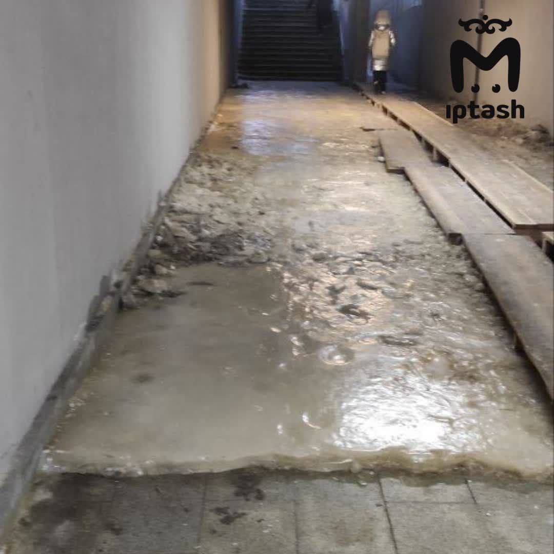 Комитет внешнего благоустройства отвечает жителям, что подрядчик сегодня ночью должен всё убрать. Наводнения объяснили грунтовыми водами: пока не сделают гидроизоляцию стен, переход будет топить регулярно.