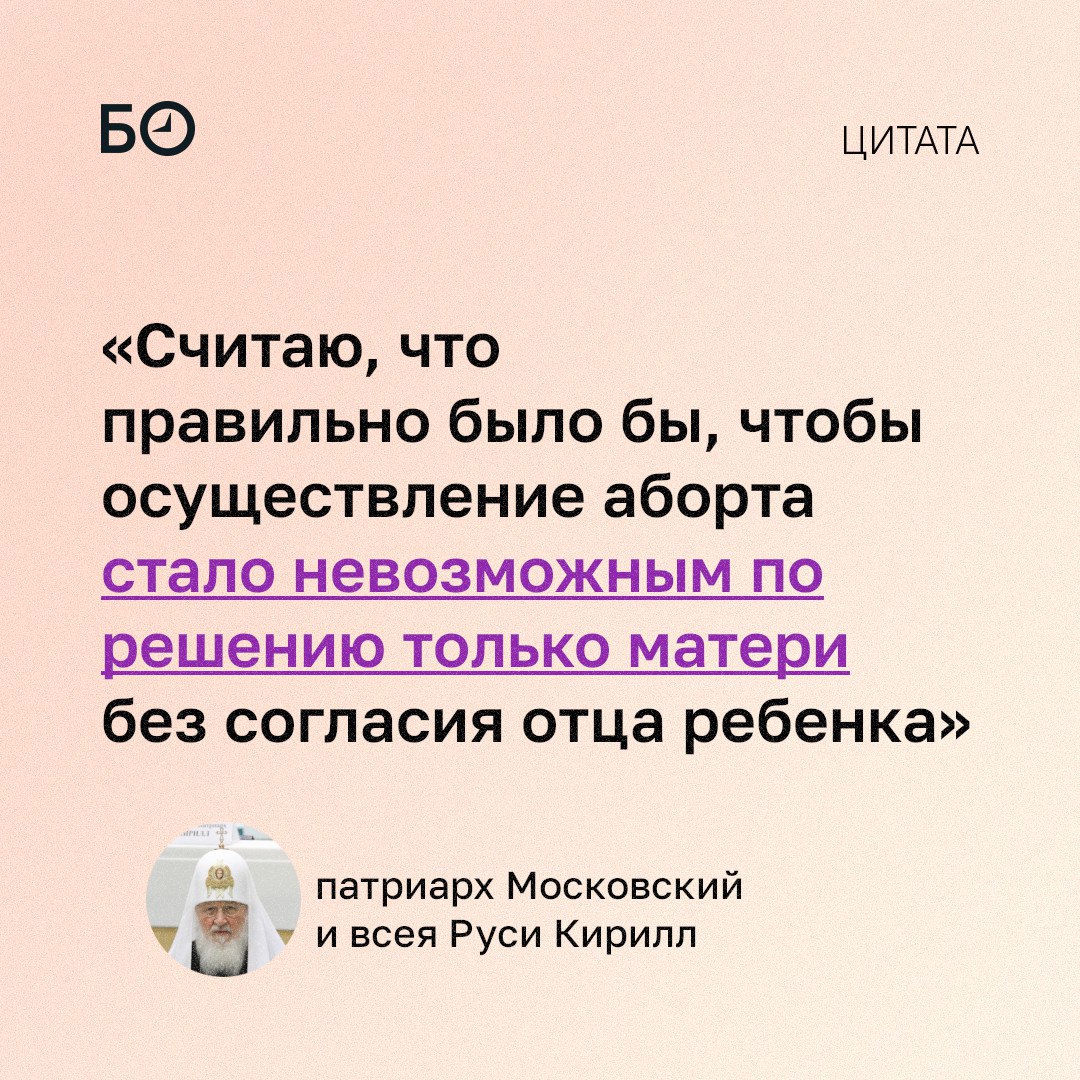 Патриарх Кирилл предложил ввести запрет на аборты без согласия мужа. Сейчас по закону решение об аборте принимает только мать ребенка.