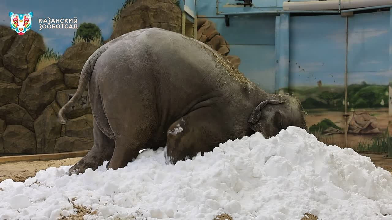 В Казанском зоопарке слон Филимон резвится и ныряет в пушистый снег. Пока мы все спорим о погоде и работаем, он ловит удовольствие от зимы