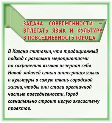 Казань создает «языковую экосистему», вплетая татарский язык и культуру в повседневность города. Вместо разовых акций здесь реализуют целый комплекс проектов — от театральных студий и городских фестивалей до «языкового» метро и грантов для инициатив. Городская среда, творчество и образование теперь работают вместе, чтобы живой язык стал органичной частью жизни каждого горожанина.