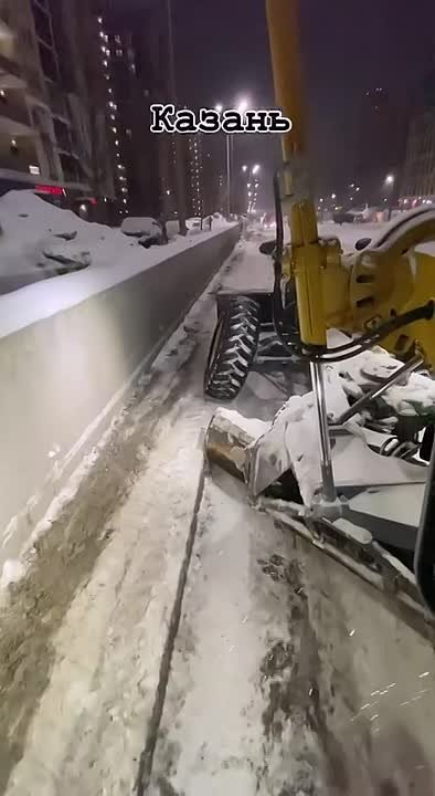 Водитель грейдера показал, как чистят дороги города. Напомним, вчера высота сугробов в Казани достигла 50-53 см.