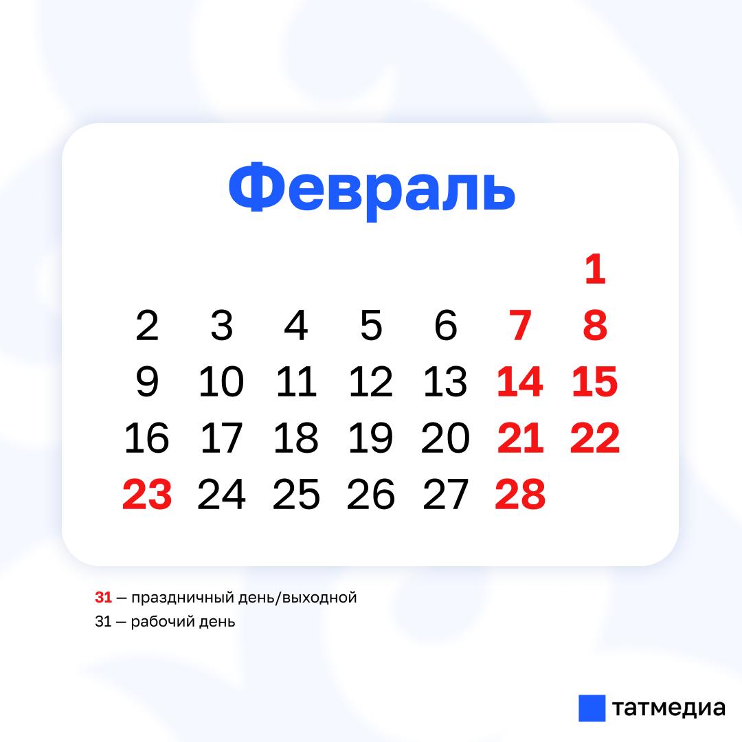 Татарстанцы в феврале будут отдыхать девять дней
