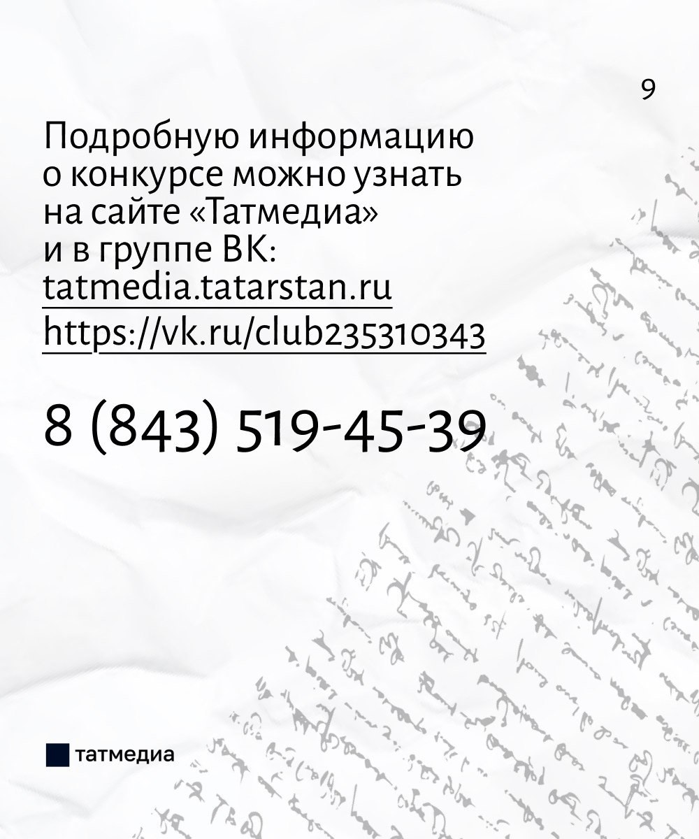 Более подробная информация о проведении данного конкурса размещена на сайте Республиканского агентства по печати и массовым коммуникациям «Татмедиа»: https://tatmedia.tatarstan.ru/index.htm/news/2481293.htm