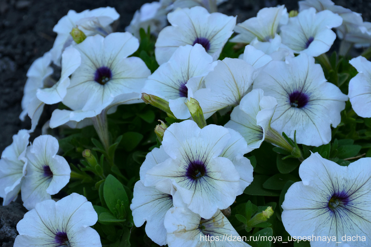 С высотой всего 20-25 см и шириной до 50 см, петуния полностью покрыта цветами и не требует ни обрезки, ни прищипки. Каждый цветок достигает диаметра 6-8 см и радует глаз.