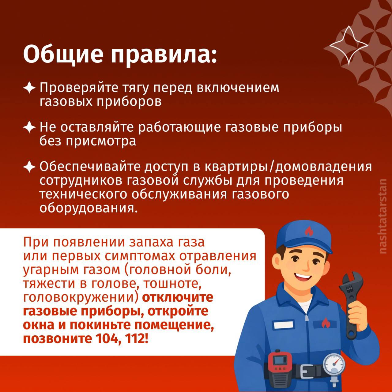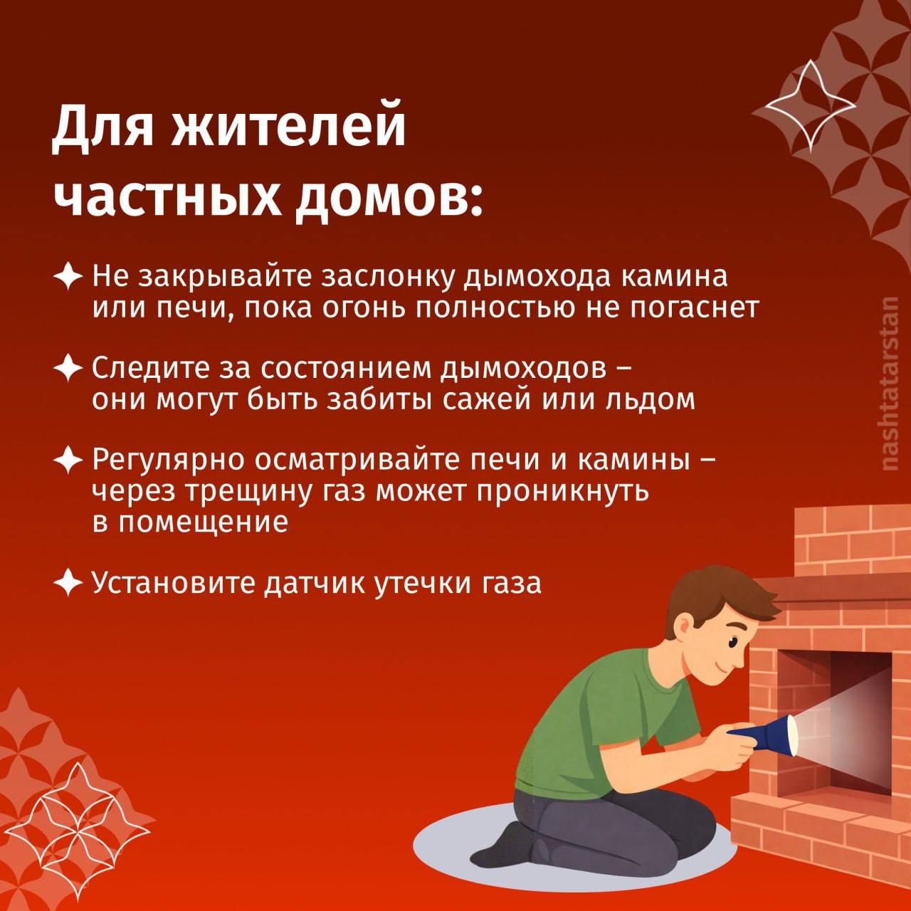 В ближайшие дни нас ждут сильные морозы. Именно в холода особенно важно помнить о газовой безопасности: проверять тягу, не оставлять включенными приборы без присмотра и соблюдать другие меры предосторожности. В карточках рассказываем основные правила профилактики отравление угарным газом