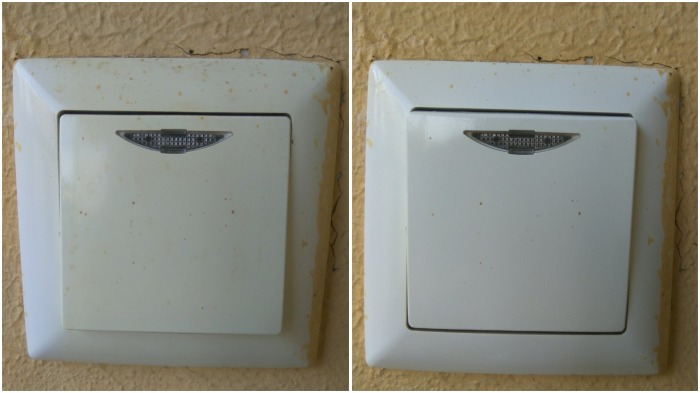 Важно втирать раствор в пластик с усилием, и уже через минуту можно заметить, как очищаемая поверхность становится заметно светлее. Для труднодоступных участков идеально подходят ватные палочки, смоченные в димексиде. Перед обработкой розеток важно отключить электроэнергию в квартире. После завершения процесса стоит протереть поверхность сухой микрофибровой салфеткой для достижения наилучшего результата.