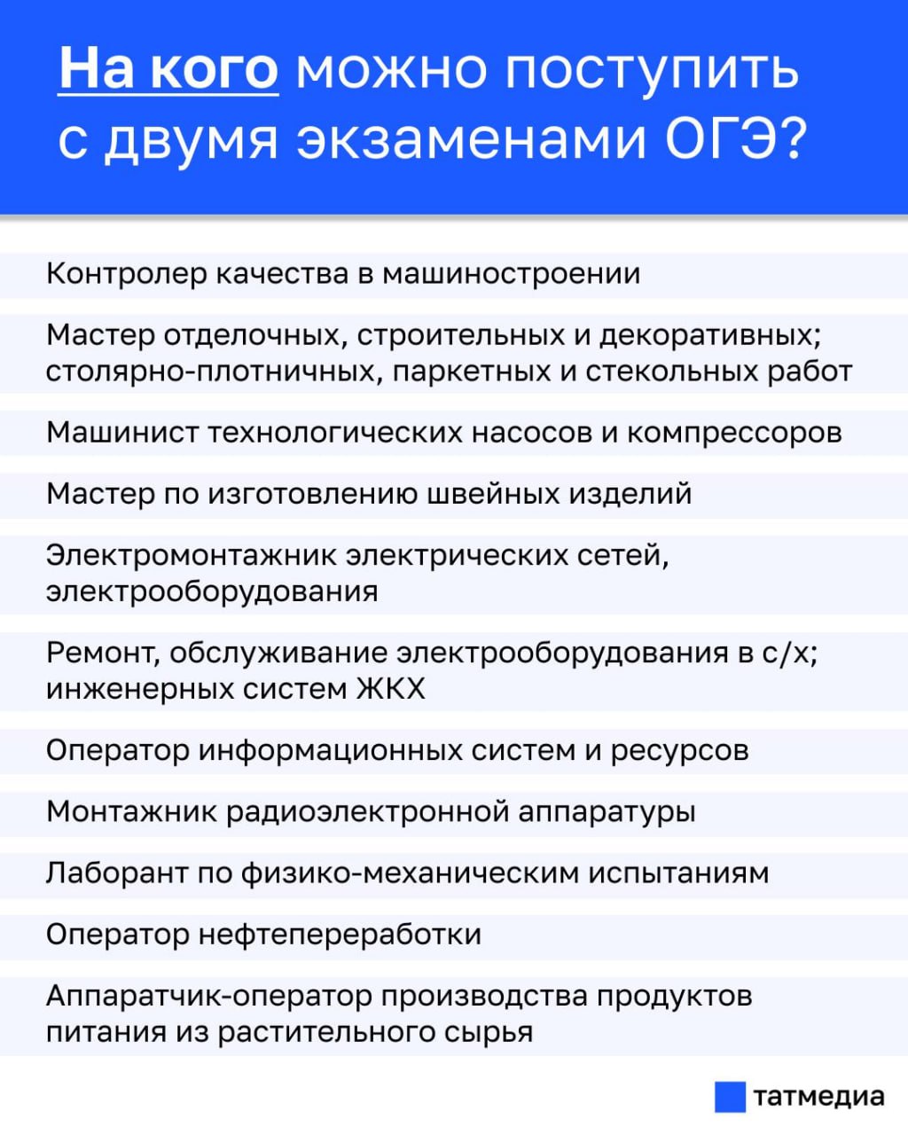Какие профессии могут получить 9-классники, сдавшие два предмета на ОГЭ?