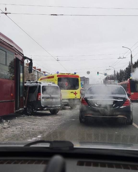 В Казани на Гвардейской столкнулись трамвай и легковушка