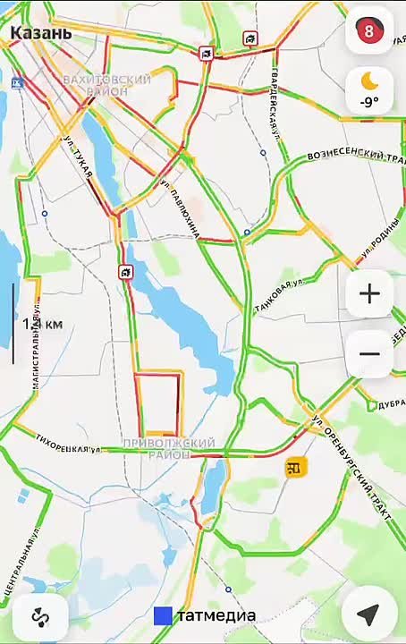 В Казани вновь образовались 9-балльные пробки