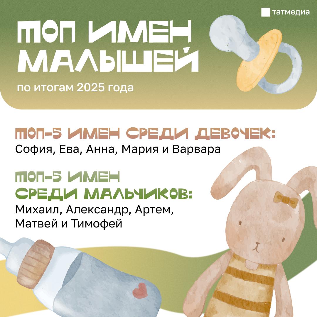 Отмечается, что по сравнению с 2024 годом в пятерку самых популярных женских имен вошло имя Варвара, вытеснив Викторию.