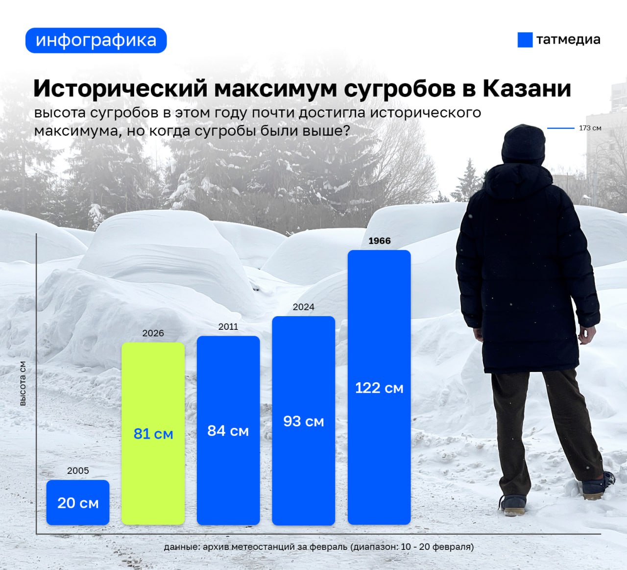 60 лет назад в Казани сугробы были на 40 см выше текущих