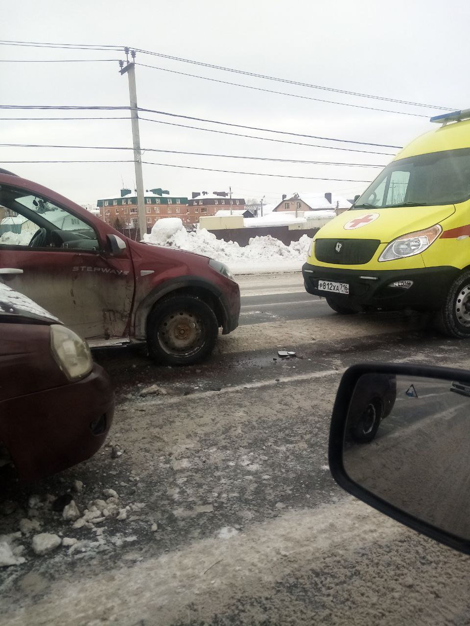 Судя по фото, столкнулись «Лада» и иномарка. На место приехала скорая.