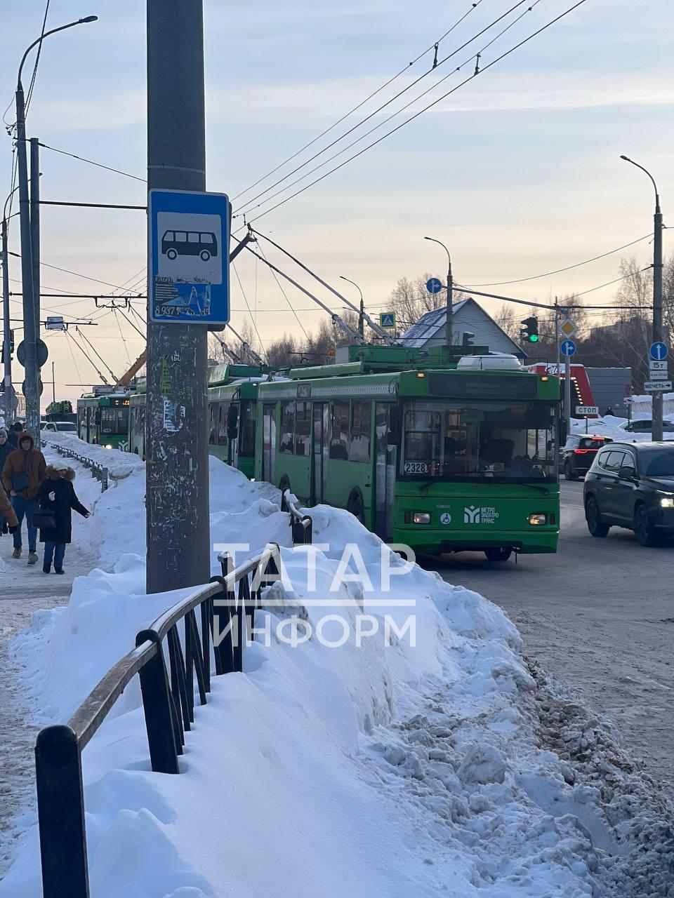 Подписчики канала сообщают, что у ТРЦ "Франт" в Казани встали троллейбусы