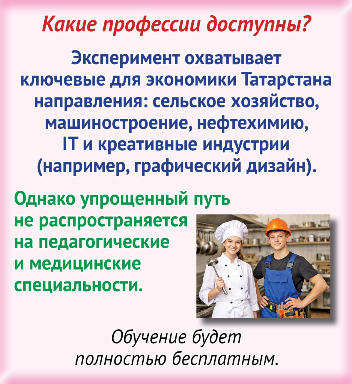 В этом году в Татарстане начинается важный эксперимент для выпускников 9-х классов, которые хотят получить рабочую специальность: для поступления в некоторые колледжи и техникумы теперь будет достаточно сдать всего два основных государственных экзамена (ОГЭ) вместо четырех.