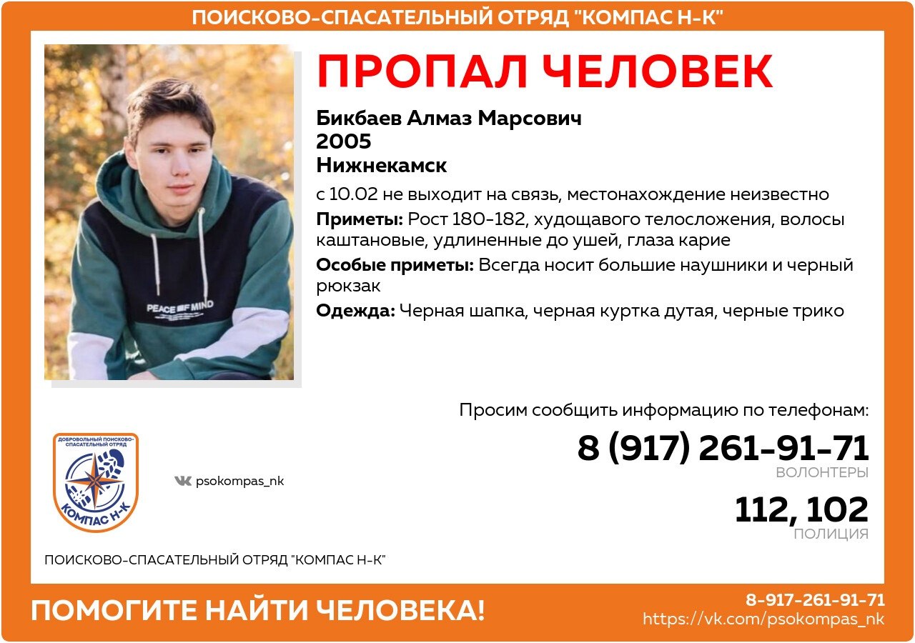 Пропал юноша 2005 года рождения. Не выходит на связь с 10 февраля