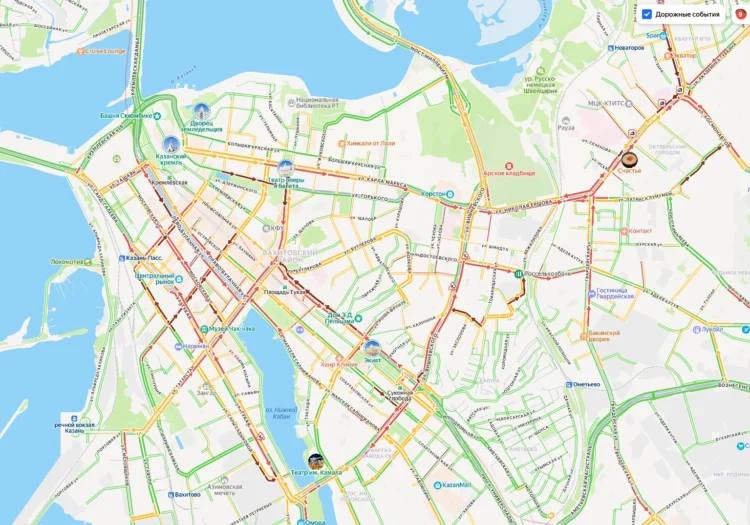 В Казани в четверг, 12 февраля, образовались заторы на уровне 9 баллов. Об этом свидетельствуют данные сервиса «Яндекс.Карты». Заторы наблюдаются почти во всех районах города.