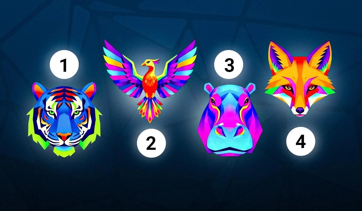 В этой версии теста вам предложены четыре различных животного: тигр, феникс, бегемот и лиса. Внимательно рассмотрите их изображения и прислушайтесь к внутреннему голосу, который подскажет, с каким из них вы чувствуете родство.
