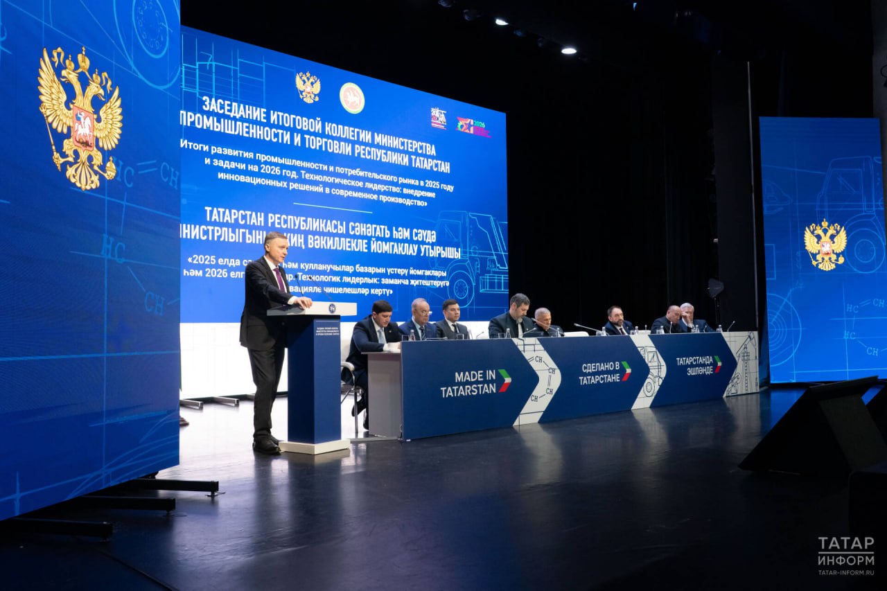 Коллегия Минпромторга РТ прошла в Нижнекамске. Были подведены итоги работы промышленности за 2025 год. Несмотря на хорошие показатели, нынешний год обещает стать непростым для всей индустрии страны. Что продемонстрировали на масштабной выставке продукции предприятий республики, с какими предложениями для поддержки предприятий выступил глава Минпромторга РТ Олег Коробченко и на что обратил внимание Раис РТ Рустам Минниханов – в репортаже «Татар-информа»: