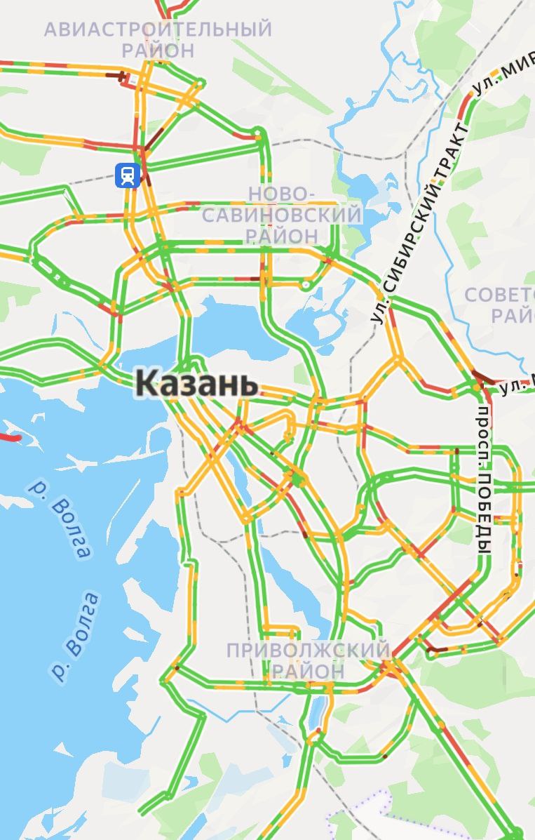 Утром среды в Казани образовались семибалльные пробки, следует из данных сервиса Яндекс Карты.