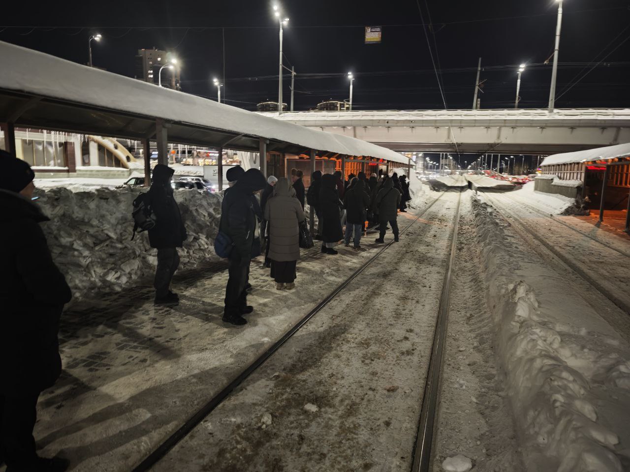 По их оценкам, количество ждущих транспорт пассажиров может доходить до 70 человек. Как отметили в пресс-службе Метроэлектротранса, ни повреждений, ни аварий в настоящее время нет. Причиной ожидания стало уменьшение количества трамваев из-за сильного снегопада в последние дни.
