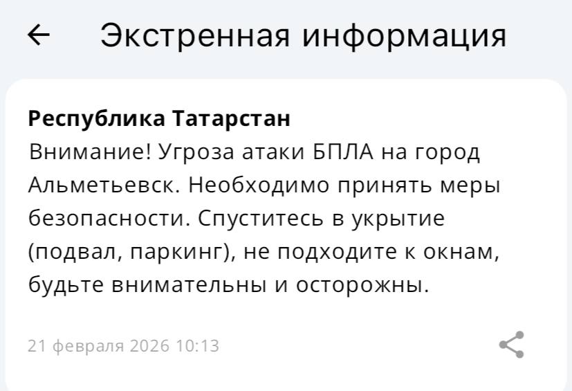 В Альметьевске объявлена угроза атаки БПЛА