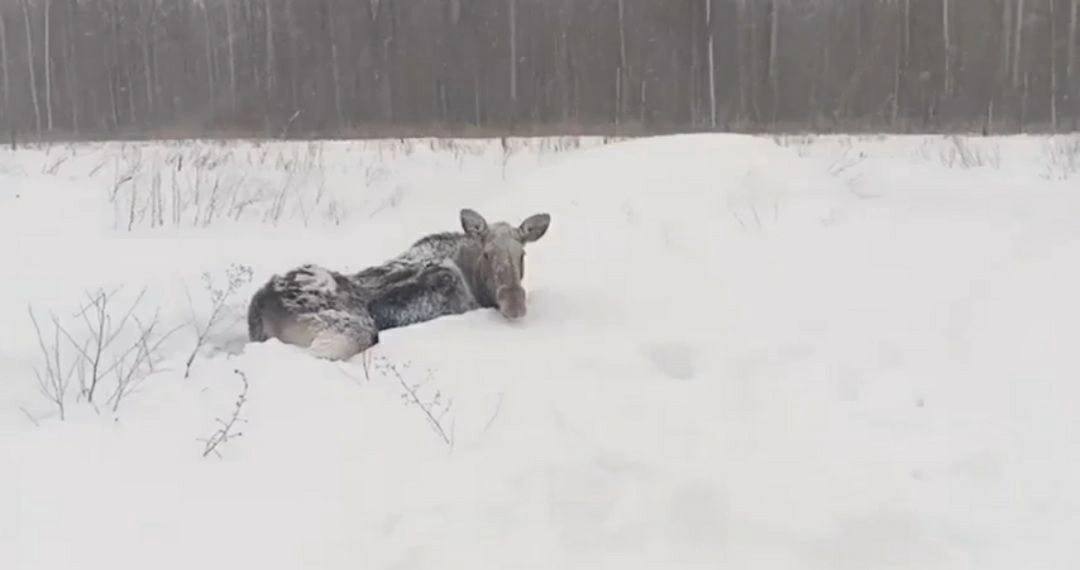 В Татарстане спасли лося из снежной ловушки