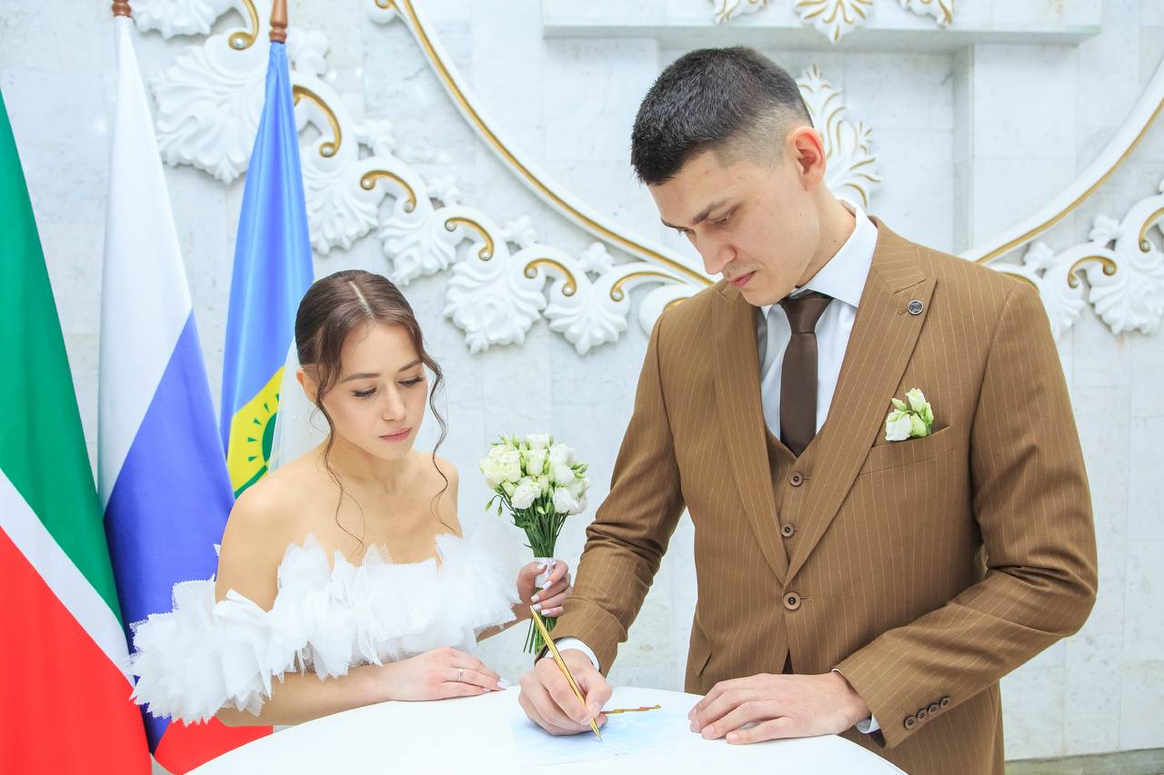 Во Дворце бракосочетания Нижнекамска новоиспечённые супруги оставили тёплые и искренние пожелания тем, кто сегодня выполняет свой долг в зоне СВО.