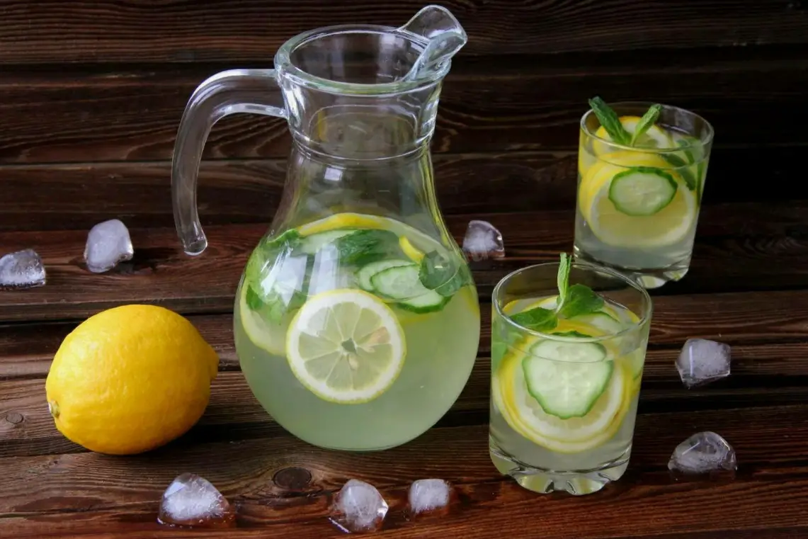 Все ингредиенты выкладывают в кувшин: лимон, огурец, мяту и имбирь. Затем всё хорошенько перемешивают и слегка мнут с помощью лопатки. Вливается вода - около 2-2.5 литров, в зависимости от личных предпочтений. Можно использовать очищенную, родниковую или минеральную воду с низкой газированностью.