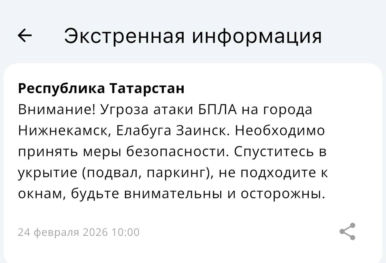 ВАЖНООбъявлена угроза атаки БПЛА на город Альметьевск.Для международного аэропорта города Нижнекамск введены временные ограничения на прием и выпуск воздушных судов.Напоминаем о запрете публикации фото и видеоматериалов, связанных с пролетами БПЛА и...