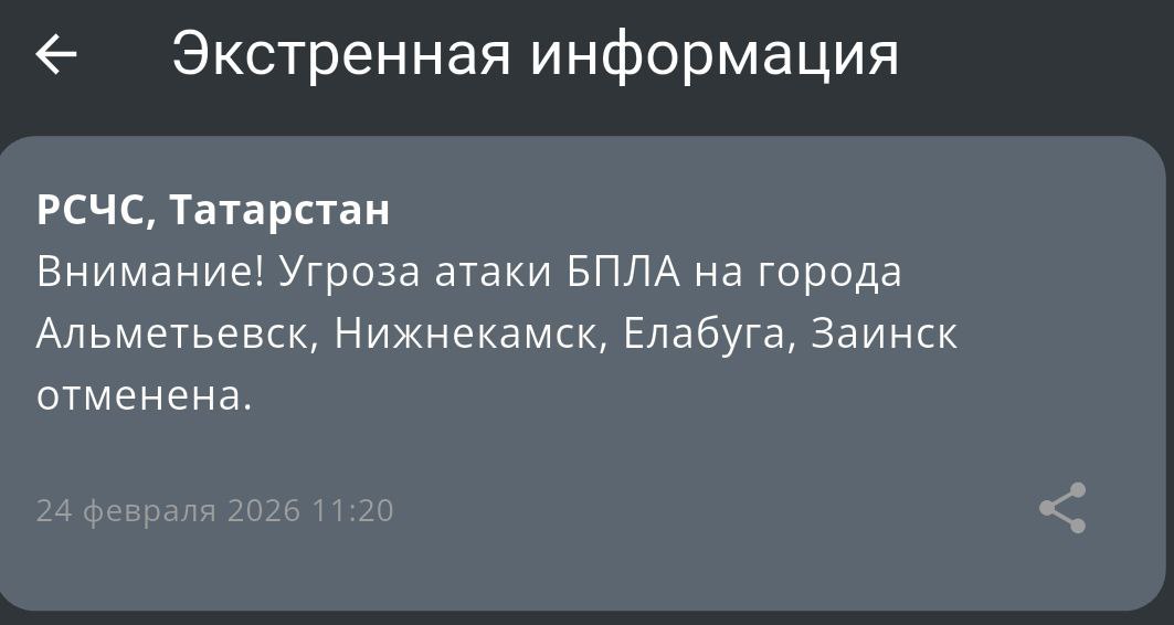В Альметьевске, Нижнекамске, Елабуге и Заинске сняли режим угрозы БПЛА