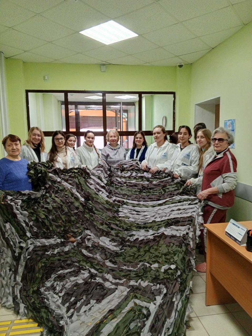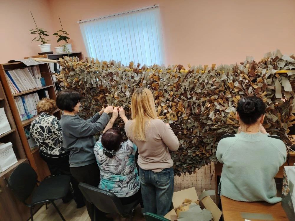 Волонтеры из Арского района и пенсионеры из «Союза пенсионеров России» совместно изготавливают маскировочные сети для военнослужащих.