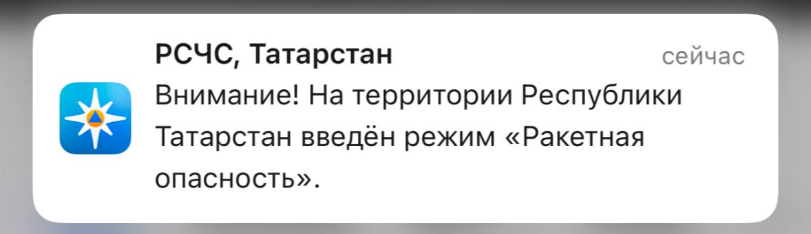 Официальное уведомление пришло в приложение МЧС России.Подпишитесь на БИЗНЕС Online в Telegram и MAX