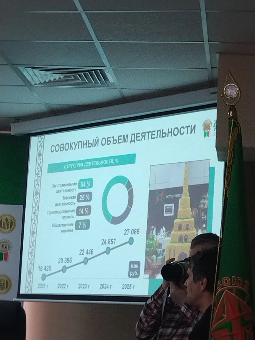 За 5 лет совокупный объем деятельности вырос в 1,6 раза — до 27 млрд рублей. Доля Татпотребсоюза в России — 12%, в ПФО — 27%.