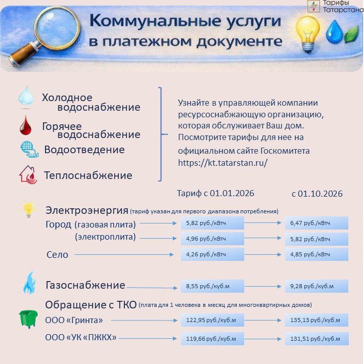 Государственный комитет Республики Татарстан по тарифам подготовил информационные карточки с разъяснениями о структуре начислений в платёжном документе