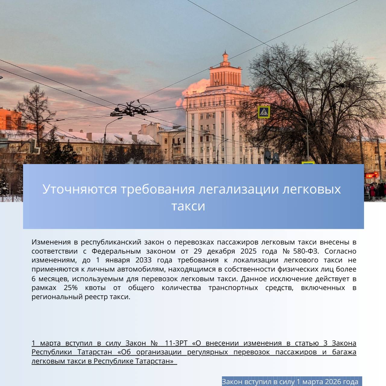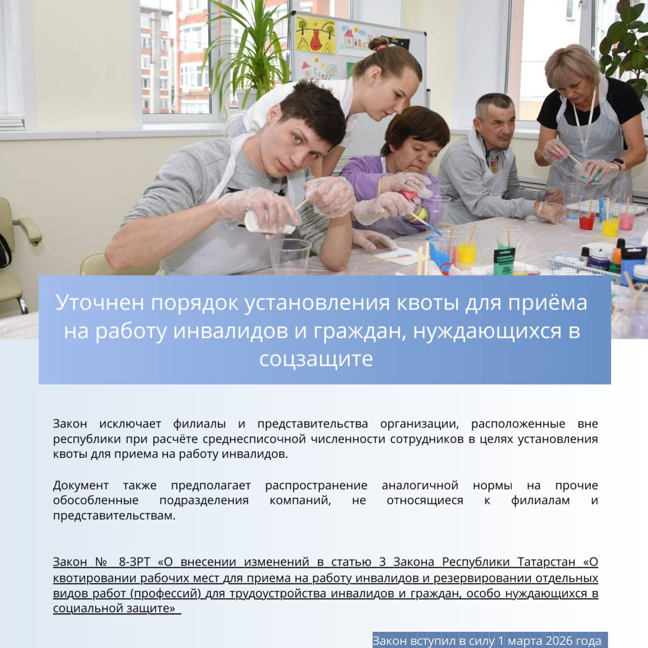 В частности, законодательно расширяются меры социальной поддержки, уточняются правила перевозки пассажиров легковым такси, порядок организации целевого обучения и трудоустройства людей с инвалидностью.